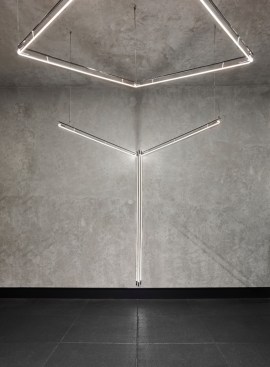 What inspired this design idea was the fact that the owners are three close friends, therefore the design was focused on the number three as a starting point for the desired design. Beril Khalaf Interiors was aimed to create a different shooting scene for the trainers in every perspective of the interior. Rather than a classical gym, this area has been designed as a performance stage with a studio concept where every spot could be used for shootings. Textures, colors, and lighting elements was chosen for project suitable for both this idea of streaming and the brand identity.