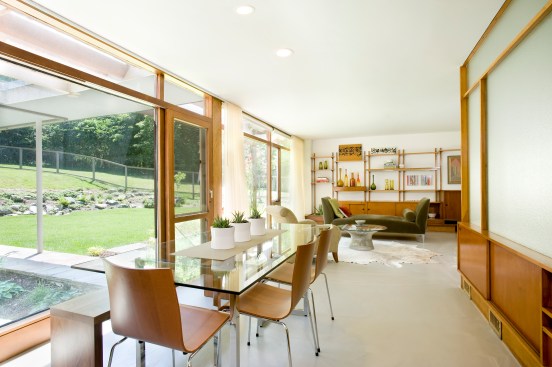 The original home was designed in 1949 by Boston architect Samuel Glaser. The previous owner cared for and maintained its many unique attributes including custom woodwork found throughout the home. The current homeowner is an interior designer and greatly appreciates the unique style and features of the home, including the stone, concrete, glass, and wood.