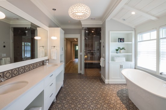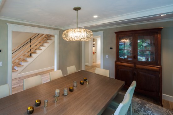 The home provides the perfect blend of modern and traditional details, yet maintains the original style fitting the neighborhood. Viewing the home from the front exterior, one would not realize the actual size of the home. We utilized various recycled products including reclaimed tile, oak for flooring and doors. We also incorporated green features such as solar panels for electricity and LED bulbs with the lighting fixtures. Fortunately, the southerly facing roof is not seen from the street and gave us a perfect spot for the panels. The small lot and deep excavation was a challenge, nevertheless we were able to create a gorgeous, practical home for the homeowners.