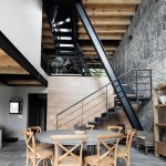 The mix of natural materials like: stone, wood, steel, and glass, together with the acute and high spaces of the house give it a warm and contemporary feeling.