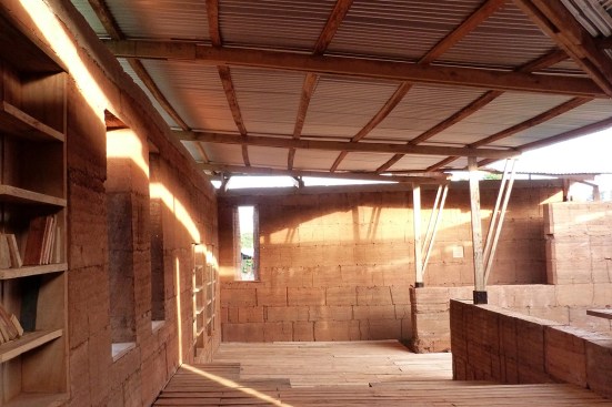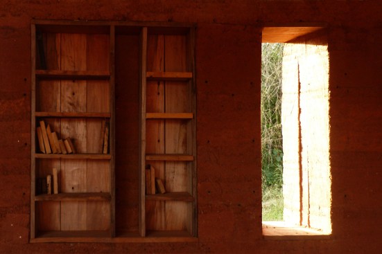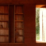 Everything was carefully planned to conserve resources. Thus, the earth extracted for the foundation was compacted with metal panels in the walls, the wood forms were reused for the flooring, and salvage materials were used for the doors and all the wood finishing touches of the library.