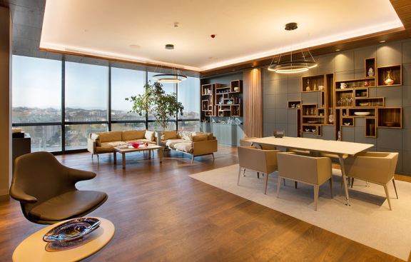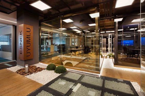 The transparency approach is based on producing glass surfaces used in the meeting rooms, where the access to the light of the facade is benefitted relatively less. Combining natural and warm materials is one of the characteristic features of Sisecam Headquarters’s design. Glass, natural stones, wood, interior landscape items with the rough effect of its gross look can be shown as example of it.