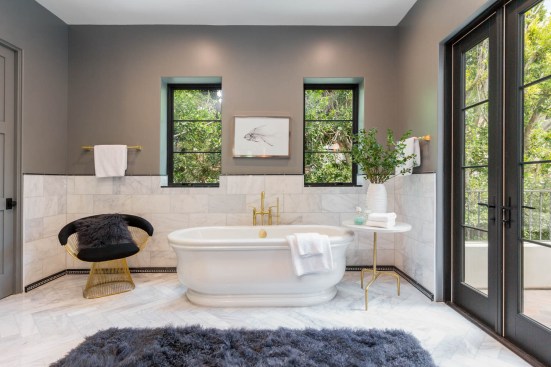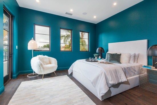 “The wonderful design of this home allowed for large open living spaces while at the same time incorporating many private rooms. This created a lush aesthetic which was grand but not too large for a family to live comfortably in. LA.” The white walls in the first-floor public areas exaggerate the high ceilings, while more colorful tones delineate private areas. Ami explains, “The vivid colors create the idea that you are in a private space.”