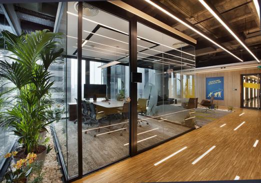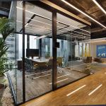 Meanwhile, the key points of project have been designed with different concepts including kitchenettes and, functional and colourful cafeteria. The cafeteria has been planned as a comfortably spacious place in order to use daylong and include multi-funtional areas like meeting and recreation space. Unlike monotonous open office system instead of uniform sestet working arrangement, diffirentiated working arrangement has been applied and also pop-up meeting units and coffee break places have been attached inside working hall. All the visusal elements on project including colour selection, graphic design and visual commicative messages emphasis the young and dynamic identy of BAT crew. Thanks to the variation of many illustations on different surfaces, lighting elements on floors and ceilings, the visual guidance on project has been provided for users. Modern, warm, timeless architectural decisions that respond to the needs of nowadays and the company and material choices that support these decisions have been culminated in whole.As a result of collabrating natural lighting, green texture, synthetic flooring, glass, marble and wood, it has been completed in three months and come into service .