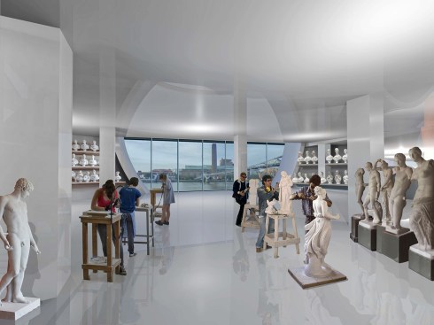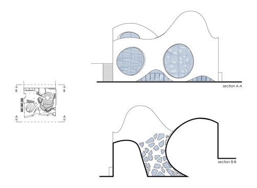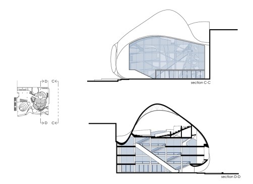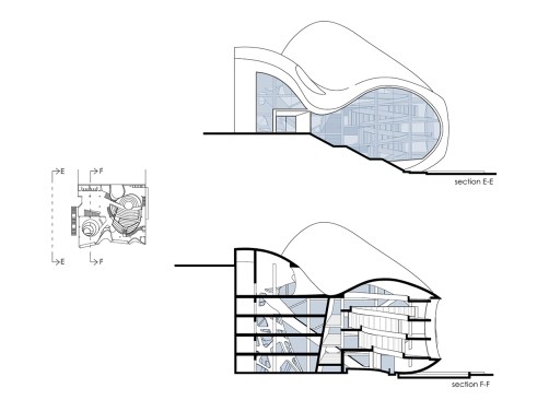 The proposed building, due to its unique shape, differs greatly from the neighboring buildings, infact with its undulating roof seeks a poetic dialogue with the dome of the majestic Cathedral of St. Paul.