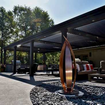 For this specific project, frustration had grown for the owners of this rural Ohio home. The protection they’d hoped for from a wooden pergola at the edge of their patio was not being delivered, not to mention the wood was hard to maintain and seemed to attract bees.