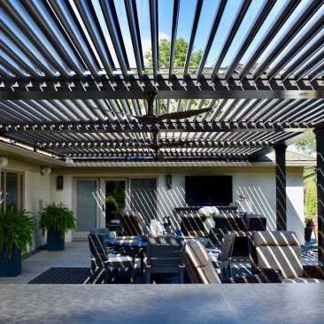An advertisement led Rod and Marlene to check out the Pergola X, and the more they learned about the automated pivoting louvers, the low maintenance powder-coated aluminum, and special options, like cornices and colors, they were sold. In fact, they were so impressed by the functionality that instead of just replacing their existing wooden pergola, they expanded the project to cover a larger area of their patio.
