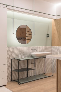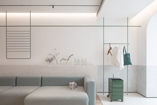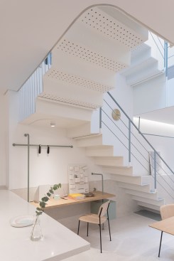 On the 1st floor, the sunlight living-dining room and the kitchen are designed as a whole space, where family spend most of time together. We hope this space belongs to every scene of life, instead of being defined by functions. We designed a whole modular furniture wall, called "life board", which can be decorated or assembled by accessories in diverse ways, along with life changing. From this point of view, we hope the future form of the design could be gradually shaped by daily life.