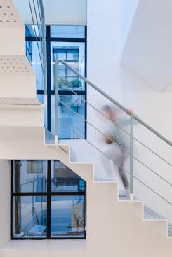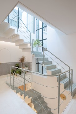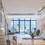 The original architecture was completed in 1947, which consists of 3 floors, 5.5 meters in width, and about 15.2 meters in depth. It faces south and has entrances in both sides. Due to the complicated compartments and deep depth, the overall indoor lighting was bad. As it was built long time ago, part of the building structure need to be repaired, we also reinforced the whole architecture, and unified the height of the entire building. The staircase in the northern side was torn down, Skylight and staircase are designed to be the center of the architecture, reshaping the whole logic and form of this 3-story building. Punched holes, the steel stairs can bring in light, The stairs go upward around the natural light patio from the 1st floor, extending the whole house vertically around the light.