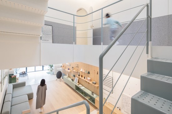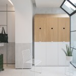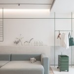 On the 2nd floor, the door and the storage space are hidden behind the wall, which creates a clean and complete area. During sunny days, it will be a warm family space.