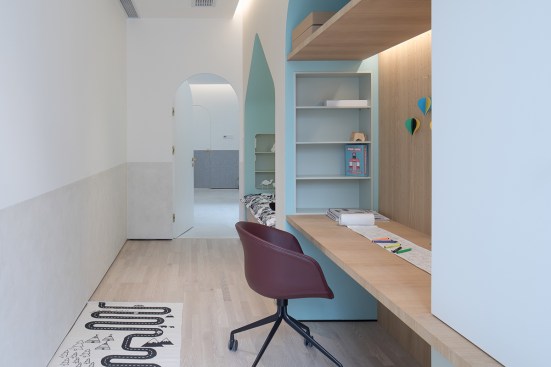 The kid's bed, desk and storage space are connected through our design. The kid likes the house very much, climbing stairs, playing in the courtyard, which is also our design original purpose – to bring a bigger world to the kid, allowing him to know about the changing world from another dimension.