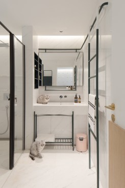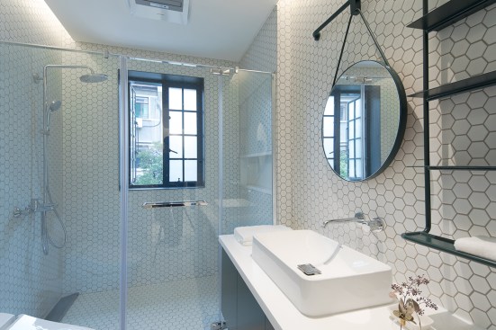 Following natural daylight, going up along the steel staircase, we can see modified skylights, vertical lighting windows and a pure outdoor space. This is the area we modified most. The whole building starts from light and vertical space. For the main bedroom, we kept the slope structure of original building, unified the cloakroom and the toilet into a box, reserving the original architectural form to the largest extent and creating a new connection in the original space which is not big.