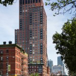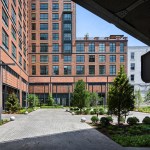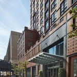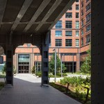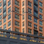 Located on a linchpin site where New York’s High Line turns west to encircle the large-scale development now under way at Hudson Yards, Abington House participates in the industrial character of West Chelsea that attracted people in the first place. Abington House was designed as a deliberate foil to the many new buildings competing for self-importance that have come to populate this once gritty industrial neighborhood. Along Tenth Avenue, shopfronts, cornices, and crenelated parapets pick up the ragged rhythm of the older buildings that define a consistent street-wall. Our simply-massed red-brick tower is enlivened by detailing inspired by the robust brickwork of West Chelsea warehouses and to the surprisingly intricate metalwork of the High Line itself. Four-story bays of windows with French balconies enliven the building’s verticality. The building’s L-shaped plan is set in a crook between the main branch of the High Line and a spur – now being developed as an elevated events plaza – to capture the magnificent protected views both south and west. The tower cradles a south-facing garden court defined by a mews-style cobblestone entry drive that runs under the elevated structure of the High Line, leading to a lobby also accessible from a second residential entrance on 30th Street. Setback landscaped terraces offer large sundecks and outdoor party spaces; a split-level garden terrace directly overlooks the High Line. The composition culminates in a bold crown that carries the simple form of the tower to the sky. Abington House on the High Line fosters community in a building that is faithful to the character of the neighborhood. The 33-story, 384,000-square-foot building offers 312 market-rate and 78 affordable apartments as a mix of studio, 1-, and 2-bedroom residences. Light-filled entertainment lounges offer communal tables, casual seating, and catering kitchens for entertaining and gathering. The lower level features a private fitness facility and additional lounge space with a fireplace. The Sanctuary, an adjacent lounge also on the lower level, with acoustically treated walnut walls, a linen-wrapped ceiling, and oversized seating, is designed to provide a place for residents to relax in solitude or with friends. LEED-NC Gold certified, Abington House features bike storage, a green roof, a storm water retention system, and environmentally preferable material finishes.