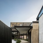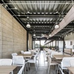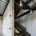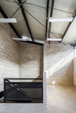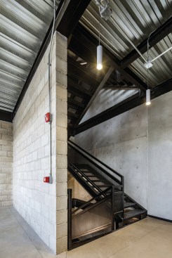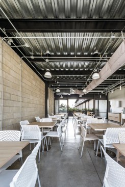 The materials used in the project are cement blocks, black steel, concrete and crystal. All together, give an industrial sensation that contrasts with the wooden furniture and the warm light from the sun, and produces a tranquil and harmonic environment ideal for the workers.