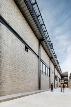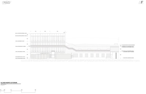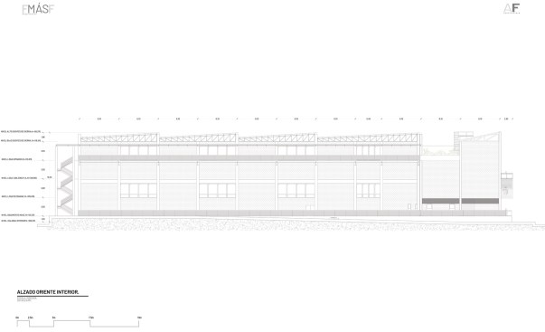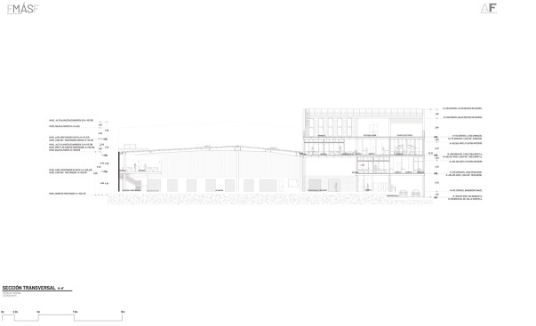 Through the northern façade as you enter, you encounter a path with a specific landscaping including trees and bushes to refresh the air and act as noise isolators from the busy environment and the heat, which in Guadalajara can reach 95Âș F (35Âș C) in spring. On the floor level, you can find a reception, bathrooms, nursery and the industrial assembly area.