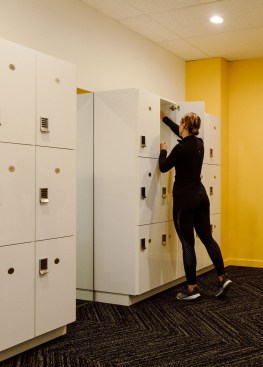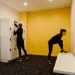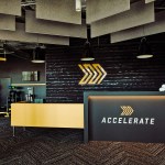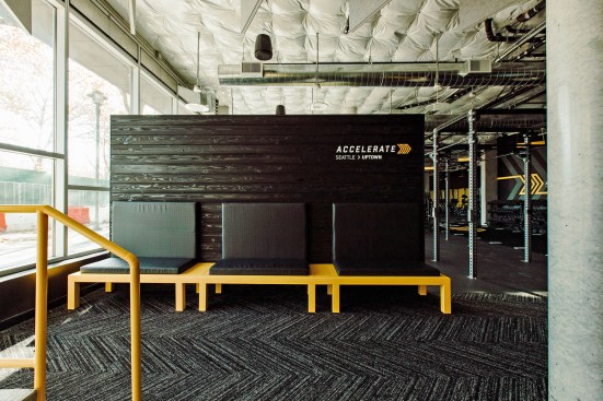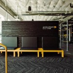 Located across from Key Arena at the Seattle Center, owners of Accelerate requested that their new gym space promote their philosophy of team training while reflecting the intensity of the workouts. Bold graphics and the Accelerate colors of black and yellow mix with charred ‘yakisugi’ siding throughout the spaces. At reception, a custom desk greets athletes and a steel framed upholstered bench provides a place to socialize before and after classes. The workout space is dominated by an 80 foot long turf strip ideal for stretching, sprints and sled pushes during training classes. Wall to wall mirrors reflect the natural light deep into the workout space while athletes keep an eye on their form and technique.
