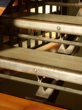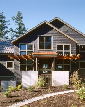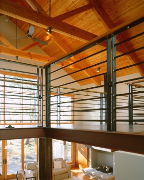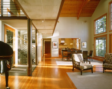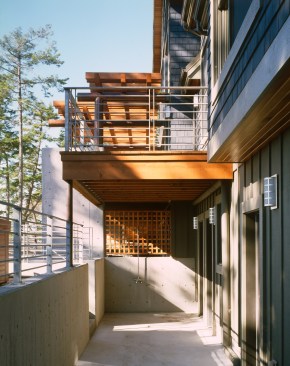 The first challenge was to fit the extensive program on the site which was shaved by setbacks and bisected by road easements, leaving a thin slice of land suitable for building. The client, who struggled with mobility due to MS, was averse to ramps and elevators. Believing them to be ugly and utilitarian, he thought his only option was a single story home. Capitalizing on his love of sleek contemporary materials, a series of beautifully connected rooms showed him how graceful accessible circulation can be when celebrated as an architectural feature. The catwalks and elevator that connect the home are one of its most profound design moments and give the homeowner what he thought he’d never have: a beautiful Master Bedroom that captures a tree-house like view of the Puget Sound.