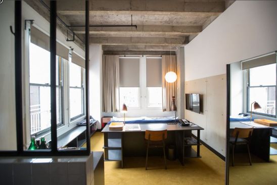 The ACE Hotel inhabits the landmark United Artists Theater and office tower, built in 1927. The tower houses the 182 guestrooms, suites and the rooftop bar and pool deck. The historic lobby is restored for a signature restaurant, hotel registration and guest services. The articulated storefront and original sidewalk paving pattern are fully restored. The theater is meticulously restored and updated for live performance events. The original 4-story lantern