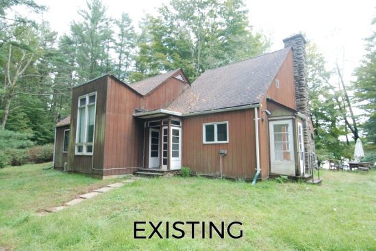 This is a weekend house on a lake outside Woodstock for a Brooklyn couple looking to escape NYC. The 1200 SF 1 story house was built in the ‘60’s & is very dated both inside & out. Their desire was to update the house to meet their needs, while also allowing for additional space both inside & outside the house for their numerous guests.