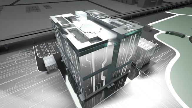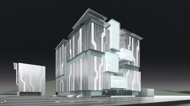 Taking inspiration from energy circuits and ecological growth, the design emphasizes geometry and movement, expressing an architectural language that is sleek and neo-futuristic. The linear façade is inspired by integrated circuits, which are indispensable to any AI computing platforms. It shapes the architecture with simple geometric form to create an atmospheric façade. Using metal plates to mimic the dense lines on circuits, the project is complete with exquisite details and lighting features to light up the area as a shining technological cube during the night. The blocks in the middle adopts façade mullions and double insulating glass to create a stick glass curtain wall façade that enables sunlight to penetrate and blur the border to the exterior surroundings.