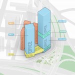 In order to create more open space, a streamlined approach is adopted to connect the landscape with the Bridge Park under the eastern viaduct, simultaneously creating harmony between built area and greenery. The design also segregates the movement of people and vehicles by functionality, placing the circulation of hotel and office space users on the outside, while optimizing the privacy of the residential area.