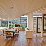 Flexibility in design is employed through an adaptive floor plate that transforms into congregational spaces. These spaces can be used for informal and formal assemblies or merely socializing spots for the employees. Variety of furniture as well as furniture arrangements have been explored to maximize floor space utilization and facilitate employee interaction and engagement. The collaborative furniture breaks the monotony associated with authoritative workplace ethics and accommodates for a relaxed environment promoting unhindered flow of ideas. By creating transparent barriers and breaking down walls and cubicles, the office operates as a hotspot for idea generation and sharing. A balanced workplace through entwining informal and formal spaces and work cultures fosters employee participation and motivation. Employee engagement ensures greater control over experiences at work, giving the liberty to the employees to decide their own level of privacy and comfort. It also positively correlates with workspace satisfaction.