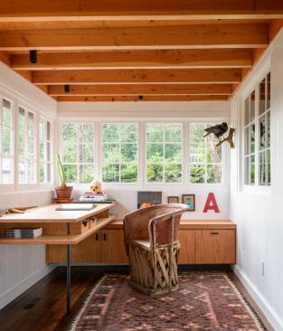 The home of Alan Maskin, principal and owner of Olson Kundig, this project reflects Maskin’s longstanding interest in the various uses of history. The project includes an 1,100-square-foot renovation and building addition to the original 1930s cabin, interior design and landscape design, as well as an art and custom furniture collection. Maskin’s design intervention delineates the house’s two different eras: the 1930s and today.