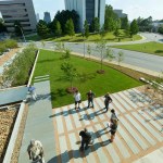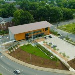 A clear example of green architecture, building and landscape were designed as one interlocking system, deferring to the natural topography and reusing every shovelful of earth on the site. The innovative “parking garden”—where porous paving supports automobiles and also functions as a multi-use plaza—eliminates storm water runoff and models an effective solution for urban parking. The parking garden provides an outdoor gathering space for Chapter and community events, expanding AIA NC’s outreach program. All rainwater is collected on site in a landscaped bio-retention planter.
