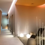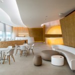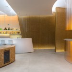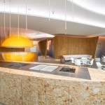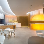 The lighting design is also consonant to the space zoning: for example, highlighting of the bar was achieved with pendant lights with a clearly defined composite vertical, yet not loading the room visually.
