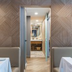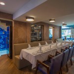The ground floor and the first level are connected by the cellar, which was designed inside of a glass box, with a metallic and wood structure, to make the most out of the gloss and colors of the bottles on display. The first floor is a spectacular space standing out for its double height and the elements selection sending all the signals for the guest to decrypt the indulging atmosphere.