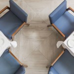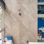 A lattice made of ropes surrounds the reception and being the lift the vertical axis connecting the different levels it was highlighted with wood-like ceramic combined with the façade´s blue glass achieving and overall impact.