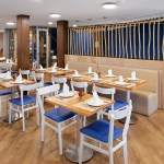 Ajoblanco is a restaurant, inspired in the Spanish Mediterranean cuisine, which asked DIN interiorismo´ s team to develop an interior design related to their menu. The Mediterranean Sea that bathes the Spanish shores was the concept defined for the color palette and the elements used to shape the design for this project.
