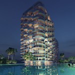 The apartments are organised in four different floor typologies in response to the client brief and integrate generous living areas and bedrooms. The glazed exterior walls of each apartment open onto large private balconies with unobstructed views to the Caribbean Sea or Nichupté Lagoon, connecting each residence with the surrounding environment and maximising the onshore trade winds of the region for natural ventilation.
