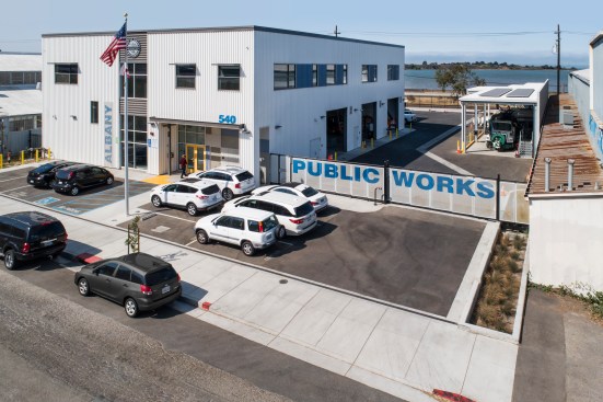 The project includes a 17,280-square-foot building, as well as site facilities for vehicle washing, vehicle parking, and associated corporate yard activities. The first floor of the facility is devoted to the department’s fleet program, warehouse functions, and storage, while the second floor holds department offices.
