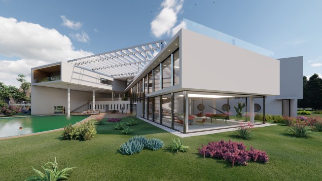 The structure consists of 3 main masses coming together at different angles. Each mass has different volumes. As these different volumes come together, they create dynamic spaces between the 3 masses. The house has 2000 m2 closed area. The spaces of the house bring the interior spaces closer to nature with its geometry that is dispersed in the green area and touches the green.