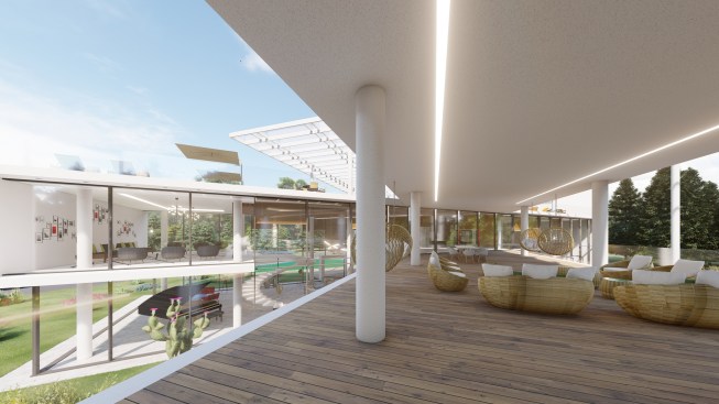 There are 7 bedrooms on the 2nd floor of the house. There are 2 guest rooms on the ground floor. The mass perpendicular to the main road on the floor does not have a space on the ground and 1st floor and touches the pool with a column. The structure defines different spaces that provide privacy in the garden. The users of the house will be able to host their own guests in their own spaces.