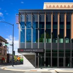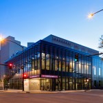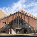Following a feasibility study to establish priorities, the renovation and expansion focused on the visitor experience (including accessibility) and building performance improvement. Beginning at the entry, the project reworks the street frontage by bumping out the envelope of the building to capture an area of sidewalk for an expanded lobby and ticketing area, and to provide space for improved vertical circulation and ADA access. The two-story, 4,800 sq. ft. addition is wrapped with a glass curtain wall system making a visual connection to the activity within the theater. A metal fabric scrim covers portions of the glass to reduce energy loads and is pulled up at the corner to playfully animate the exterior aesthetic. The addition also supports a more efficient ticketing and lobby experience, while guest comfort improvements include a remodeled theatrical house with updated acoustics, new seats, updated balcony-level seating, and additional restroom capacity.