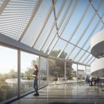 Shohei Shigematsu stated, “The north building comprises three levels offering diverse gallery experiences. Encircling the second level gallery is a double-height promenade, a flexible space with 360-degree views to the surrounding buildings and Olmsted landscape. The building is enveloped by a translucent façade that achieves an open and ephemeral quality and engages the external environment. Layers of visual and spatial connections throughout the north building foster dialogue with the architectural legacy of the Albright-Knox while inviting contemporary audiences to discover the diverse activities within.”