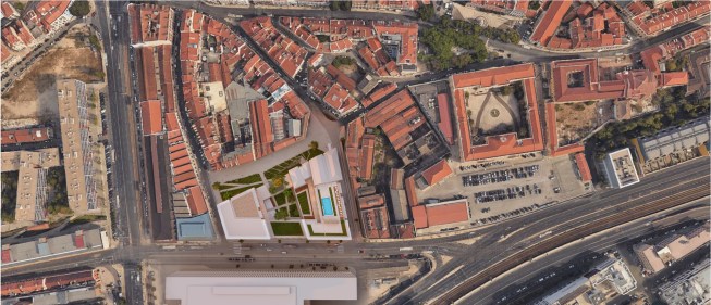 Situated in the Alcantara district, adjacent to Lisbon’s historic commercial center, the project site is fronting on waterfront developments with an industrial setting. The complex faces a residential neighbourhood where the environs of the historic building stock is preserved. A bustling neighborhood along the Tagus River, Alcantara is home to a port with vibrant rows of warehouses and industrial buildings mostly converted to restaurants and nightclubs.