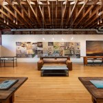Celebrating—rather than fighting—the strong linear character of the shell, the design allows the rough structure and exposed frame of the building to act as a sculpture in which the other elements reside. The play of light is well suited to the works of a photographer and the contrast between the salvaged and finished materials enriches the space. The deft touch to this reuse project is noticed in the details throughout, but especially in the elegant resolution of the trusses. The boards are so well assembled and aligned to form the trusses that they exceed either their generic function or even the perfunctory visual effect of resolution; they define the experience of the space and remind us that craft still has incredible agency in design.