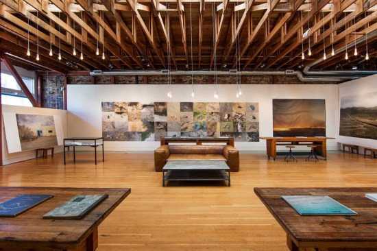 The Alcatraz Photography Studio provides the artist the space within which to design and create full-scale exhibit layouts with museum-quality lighting. Transforming the upper floor structure creates a lofty exhibit gallery overlooked by a mezzanine for ancillary work spaces, exposing the seismically upgraded historic masonry shell and gable roof.