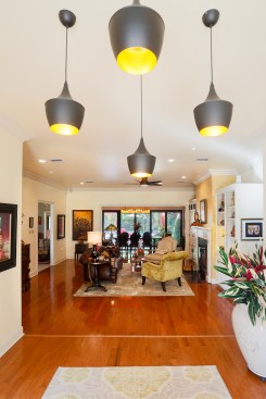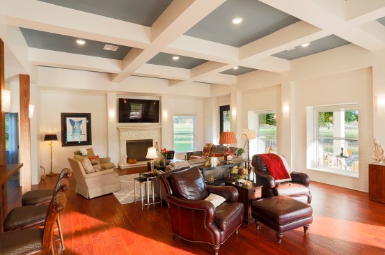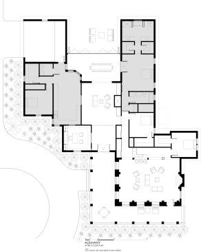 The Alemany addition and renovation began with the clients’ desire to add on to and update their Carencro, LA home. To update the typical suburban façade, a great room and spare bedroom were added to the front of the house with a loggia to overlook the pond. A large, travertine-lined circle drive of permeable pavers evokes the country estate presence the owners were looking for. Travertine steps lead to a generous the wrap-around loggia, which opens to vistas of green on all sides. With a fresh coat of white paint and three updated façades, the house is completely transformed. On the interior, the foyer was widened to create a grand entry with views to the backyard pool. Off the foyer, a small dining area was redesigned to serve as an office for the owner; frosted double pocket doors provide privacy in a room with dark-stained wood built-ins, gun cabinets, and a painting of an ancestral plantation house. At the back of the house, a 25 foot, opening Nanawall system was installed to allow a seamless connection between the new formal dining room and a renovated outdoor kitchen with covered pergolas by the pool. The great room provides a new gathering place for friends and family, with a high, coffered ceiling which dictates a grid of painted brick pilasters. Large operable windows form a strong relationship between the living space and its pastoral surroundings. A grand hearth creates a visual and familial focal point in the great room, which also houses a built-in bar with a sink, mini-fridge, ice maker, and ample storage in hallway closets. The house no longer looks or acts like it was. It has been transformed into the country estate the owner desired and has taken full advantage of the gorgeous Louisiana landscape that surrounds. The owners can now enjoy coffee on their loggia while looking out to their 100-year-old cypress and pond. They can open up the house from front to back to let in the spring and fall breezes. The natural light (which the original house suppressed) now fills the social areas both morning and afternoon. Special Challenges The challenges of this project lay in meeting the existing physical conditions (low eave, steep drop off from slab on grade) and with how to get light and the exterior to have a presence in a dark, low ceiling, 80's tract home without rebuilding the entire house. Using the connection points of the new addition and the renovated exterior spaces, the creation of the loggia and installation of a Nanawall system linked the outside to the interior and transformed the home. The loggia also helped the addition meet the existing roof system and appears to seamlessly join the addition with the existing structure. Award Category This renovation, which started as a simple addition of a great room, completely transformed the home and ties it to its natural environment in a way it was not before. Not only did the owners feel as if they got a new home, but also a new yard. Many of their friends drove by the house when coming to visit for the first time post renovation because they did not recognize the property.