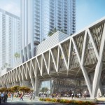 The Fort Lauderdale station will feature a sequence of stacked glass boxes that will span across NW 2nd Street in the city’s downtown. Supported by concrete V-braces, the station will rise above surrounding buildings, serving as a powerful urban focal point. The plan for the station itself is open and intuitive. Arriving passengers will enter a glazed ticketing lobby at grade level, ascend an escalator to a bridge over NW 2nd Street, and enter a departures lounge. The use of glass throughout this sequence of spaces provides a constant visual connection to the city as well as approaching trains. Viewed from a distance, the station’s stacked, dynamic form evokes a feeling of movement.