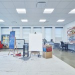 Their new space is located in an adaptive reuse project with deep floorplates, 13-foot-high ceilings, and windows at nearly the entire perimeter. The design team let the rawness of the building and its bones inform the subdivision of the space as well as the materials palette. The space is intentionally bare capturing the scrappy startup vibe of the company; ceilings and concrete floors were left relatively untouched. Offices and meeting rooms were inserted between columns and given glass fronts on which ideas and sketches are commonly drawn. Punctuations of color come in the form of accent furniture pieces, gallery walls of art from Russell Simmons’ own collection, and a giant mural painted by local street artist Blue the Great.