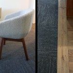 The custom walnut conference table is itself a work of art and a superb example the client’s commitment to environmental responsibility. The wood for the table originates from a large storm-damaged tree in Eugene. Salvaged by Urban Lumber, the tree was slabbed and fabricated into the table following OFFICE 52 Architecture’s design. With subtle edge details and gracefully tapered legs, the table’s elegant proportions and simple finish highlight the natural beauty and striking color of the wood slabs which are bound together with classic butterfly joints.