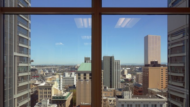 The new design embraces daylight and a sense of openness that frames inspirational views of downtown Portland and the hills beyond. At the same time, we sought to create the necessary individual offices for quiet work and contemplation by cleverly reconfiguring and repurposing the existing aluminum storefront in the space, reinforcing the client’s commitment to sustainability and economy.
