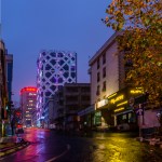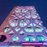 The two skins are approximately two and a half feet apart. With the aid of LED backlighting in this cavity, the whole structure glows at nights like a beacon of light. The geometric openings in the outer façade turn from negative into positive silhouettes, reminiscing Persian blue mosaic work on earlier structures and domes.