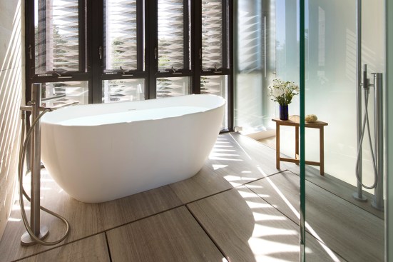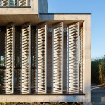 The louvers are part of a passive ventilation system that not only cools the house, but also pulls the scent of the aromatic garden through every room. The raised septic field in front of the house, required due to flood zone restrictions, is planted with a field of lavender, thereby hiding its utilitarian function. The house is filled with the smell of lavender, a scent that will forever trigger memories for the clients of summer in the dunes.