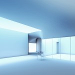 Outside, the monolithic structure wraps around a central terrace and is articulated to express the various programs of the four-level, 22,000-square-foot building. Four skylight-capped volumes stretch and morph skyward in a continuous transition from rectilinear to curvilinear. These contoured roof sections are composed of insulation and waterproofing liners sandwiched between two thin pours of cast concrete. Lighting, fire alarms, and sprinklers are integrated into these self-supporting shells.
