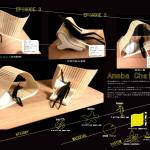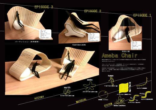 The floor-type digital signage would be placed under the Amoeba Chair, and would be a one-to-one advertising medium that would broadcast commercial advertisements tailored to each individual’s body shape, physical condition, and health, rather than the conventional wall-type advertisements.